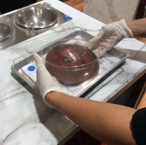 After an eternity (it seemed), a creative, chocolate-loving, aspiring groom arrived on the scene. An event producer, Rob, was looking for a place to propose to his girlfriend, Stacey. He realized right away that Voila Chocolat is simply one of the absolute best places to propose in NYC. The couple loved sweets ("Too much!" Rob and Stacey later said) and Rob was intrigued by Voilà Chocolat's setting and original concept, and interested to learn how we could customize chocolate to suit his proposal vision.