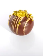 Rob liked the drama of that idea, so he ordered a custom tray of pre-made truffles topped with molded chocolate letters spelling "WILL YOU MARRY ME?" To personalize the moment even more, he ordered an extra truffle topped with a plaquette that said "I love you," and a small photo chocolate bar imprinted with Stacey's family's favorite photo of the pair -- a fun selfie of them outdoors, sharing a kiss.