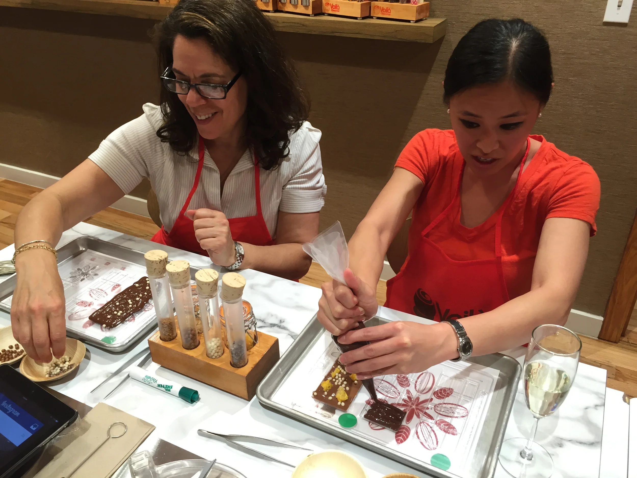 As Wharton alumni and friends sipped prosecco and socialized, they also got to do something that we're sure was never taught back in Vance or Huntsman Hall: making their own chocolate bars!