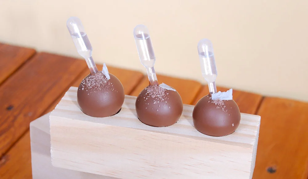 5. Half-fill the pipettes with Tequila AHA TORO Artesanal and push them in the truffle still open.